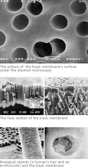 The track membrane filter are made of polyester(PET) or polycarbonate(PC) film from 10 up to 25 microns thickness contains a system of through pores.